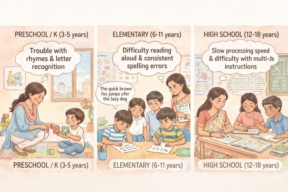The signs of dyslexia change as children develop. What's normal at age 4 becomes a red flag at age 8. Use these age-specific checklists to guide your observations.